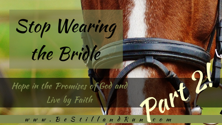 I challenge you to stop right now and ask God to help you toss aside your bridle, however many you may be wearing. Ask Him to free you so that you do not have to wear that heavy metal bit in your mouth anymore. If you feel any resistance in yourself because you feel comfortable wearing this bridle then that’s fine, tell Him that. He already knows – might as well tell Him. And here is a tip that has been a life saver for me… if you are not willing to let go of the bridle, but you would like to let go, than ask Jesus to make you willing. He is willing and more than able to change your heart!