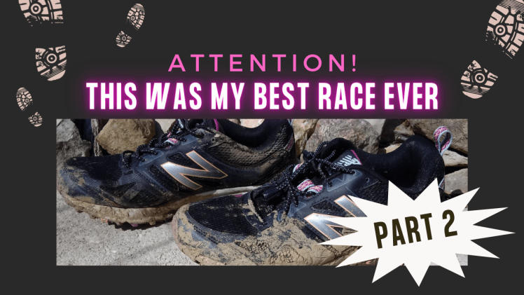 Right after this episode, God reminded me of His promise from the night before, telling me I would have fun and I’d finish, so it gave me hope to keep trudging along, one step at a time. Not even 5 minutes later, I noticed a guy not far in front of me and soon I was caught up. Having this physical company was a huge help during the last mile or so. We both agreed that this trail was super difficult, which affirmed yet again that I had not done very good research on what level of expertise you needed to run this. As we neared the top of the last hill, we ran to the finish. He took off and left me in the dust, but my sister was then at my side to push me to the finish line, so I was super grateful for that.