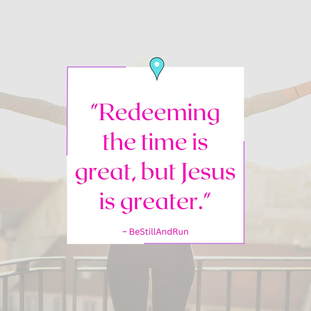 In talking about redeeming the time, which is a very important topic, God reminded me during this special meeting to not leave out Jesus, to not raise up anything higher than Christ. Redeeming the time is great, but Jesus is everything and without Him we can do nothing!!!