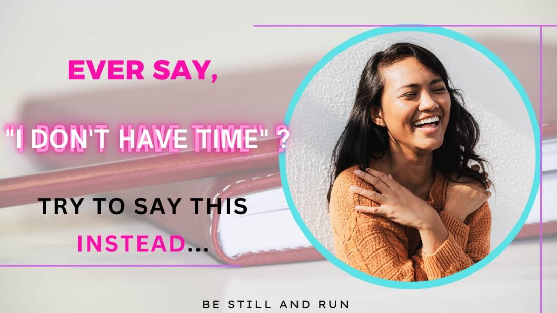 Join me in this week’s podcast, episode #28 on the Be Still and Run by Alli Anne show, to learn what God taught me to do instead of saying “I Don’t Have Time”.