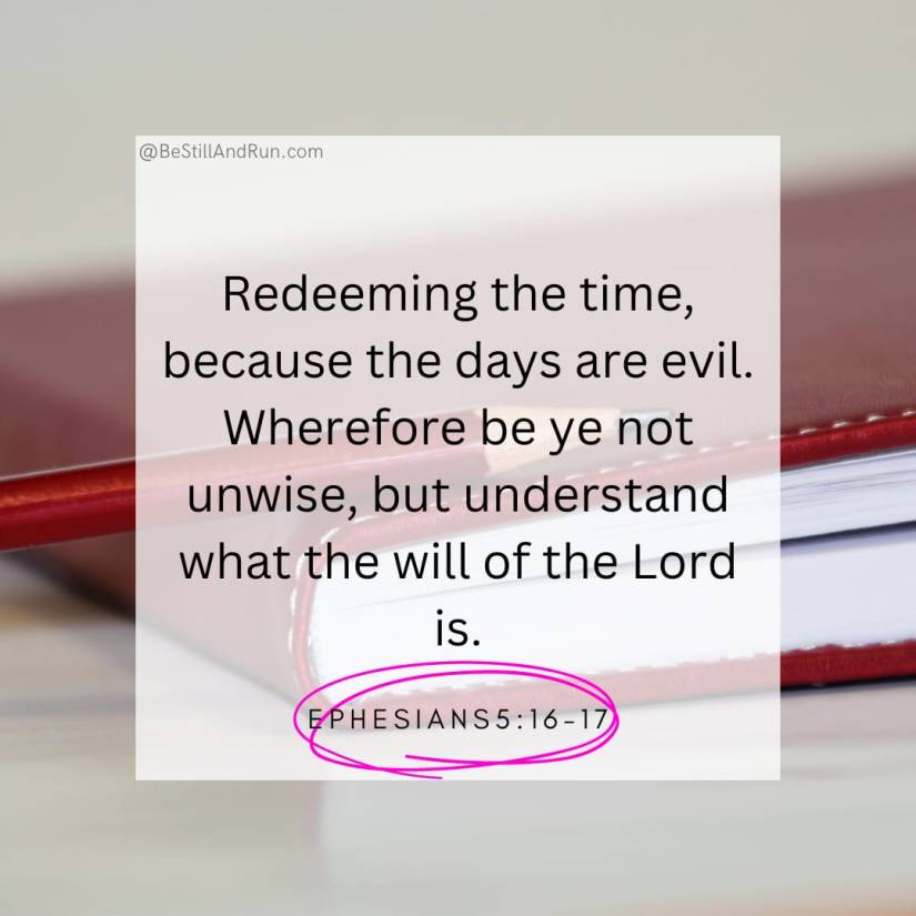 Redeeming the time, because the days are evil. Wherefore be ye not unwise, but understanding what the will of the Lord is.