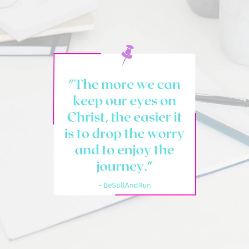 By not overcomplicating the Christian life and keeping it simple as God intended, we are able to live with joy and peace. We do this by keeping our eyes on Christ. For the more we can keep our eyes on Him, the easier it is to drop the worry and to enjoy the journey.
