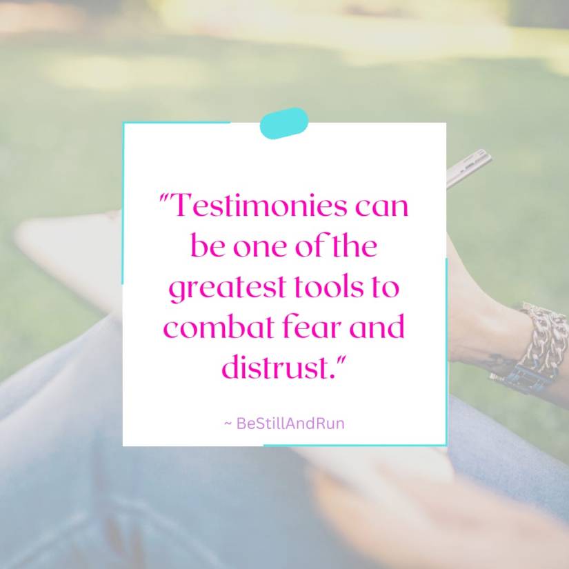 I then realized that testimonies are one of the greatest tools to combat fear and distrust because they caused me to look to Christ in my current struggles because of what He had done in my life already.