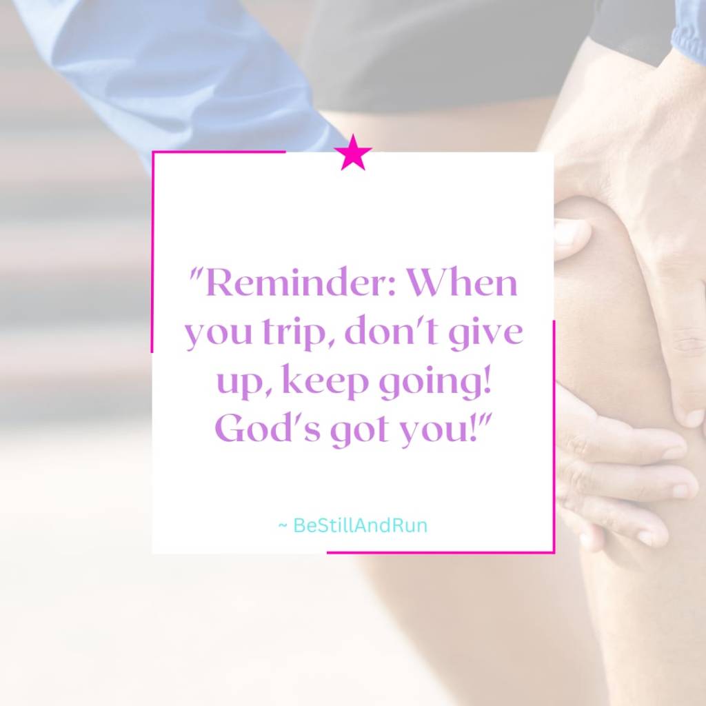 Next week I’ll be sharing some tips I have gathered from others on how to stay consistent, but until then remember this: When you trip, don’t give up! Keep going! God’s got you!