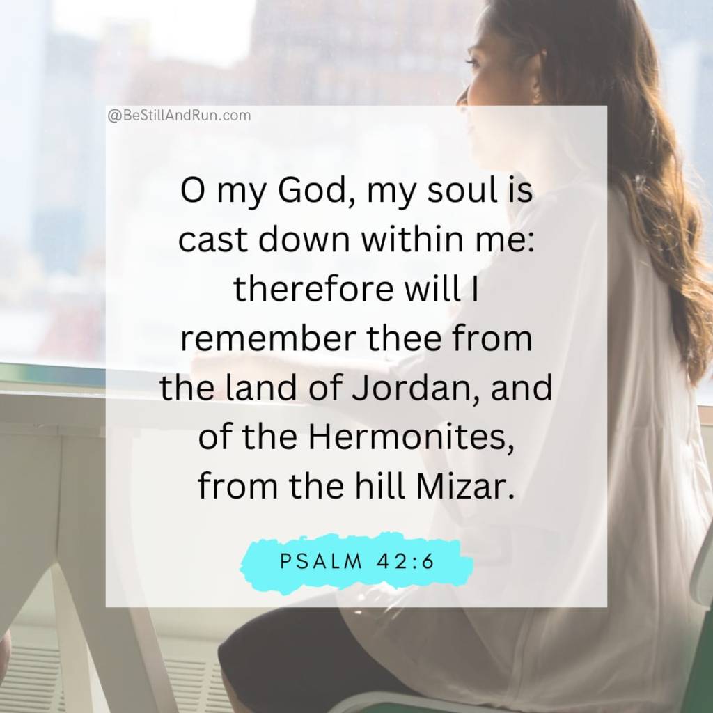 O my God, my soul is cast down within me: therefore will I remember thee from the land of Jordan, and of the Hermonites, from the hill Mizar.
