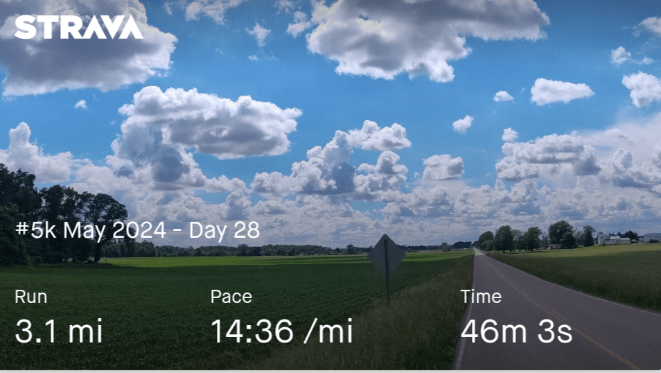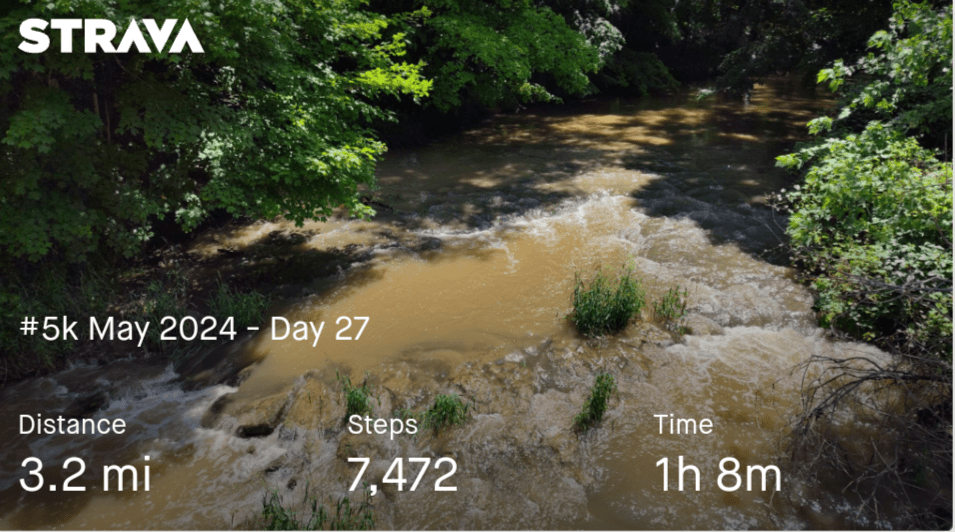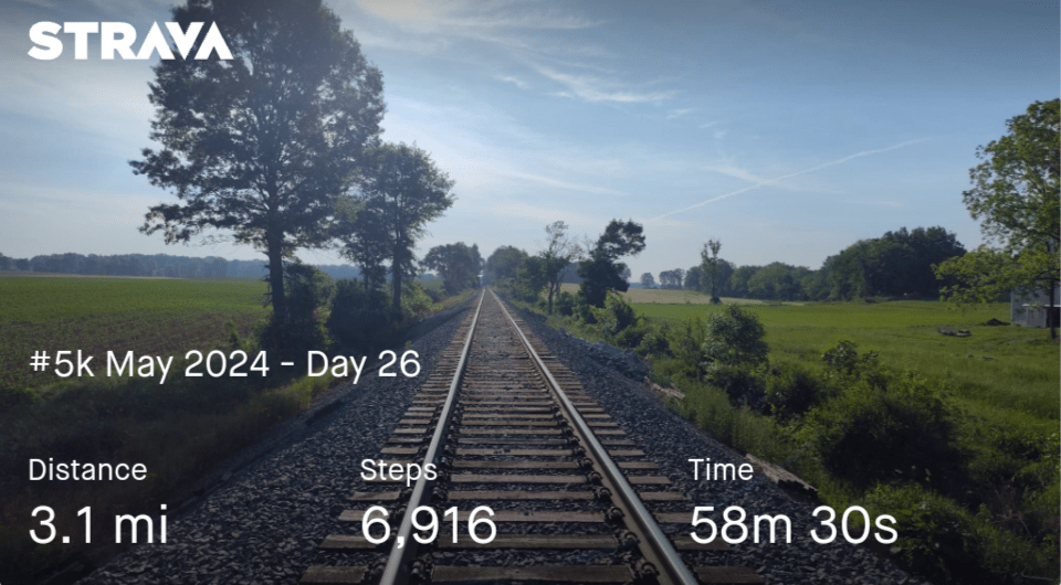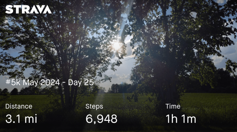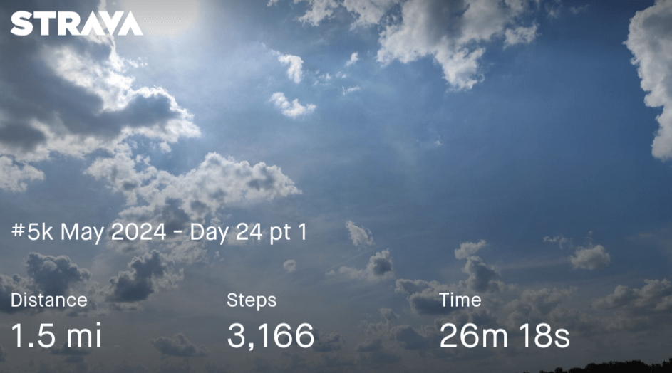 Busy day so I ended up walking half my 5k in the morning and then, the other half in the afternoon on a bike path.